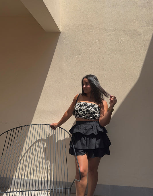 Crochet Top + Tiered Shorts